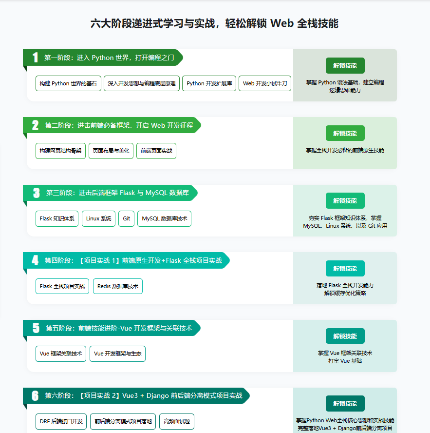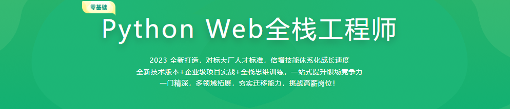 Python Web全栈工程师视频教程。本课完全对标大厂人才标准,2023 全新打造,全面讲解Python Web全栈工程师体系化知识,全新技术版本+企业级项目实战+全栈思维训练,一站式提升职场竞争力一门精深,多领域拓展,夯实迁移能力,挑战高薪岗位!