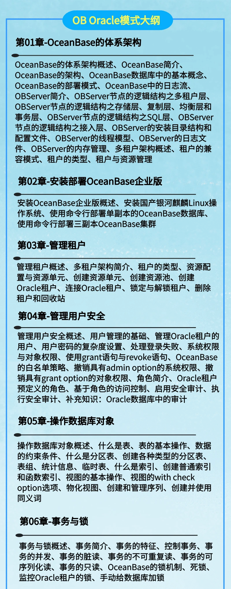 ## 第1章 OceanBase(Oracle模式)课程开篇