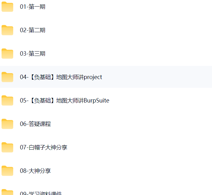 │ │ ├── [地图大师新手src漏洞挖掘指南]第九课:白帽大神经验分享.mp4